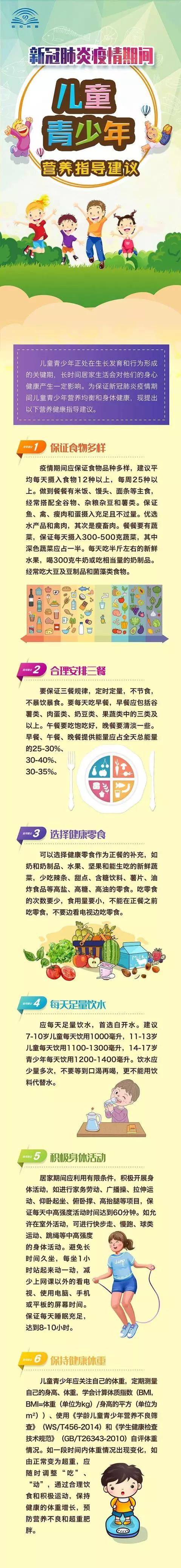新冠肺炎疫情期間 兒童青少年營養健康指導建議